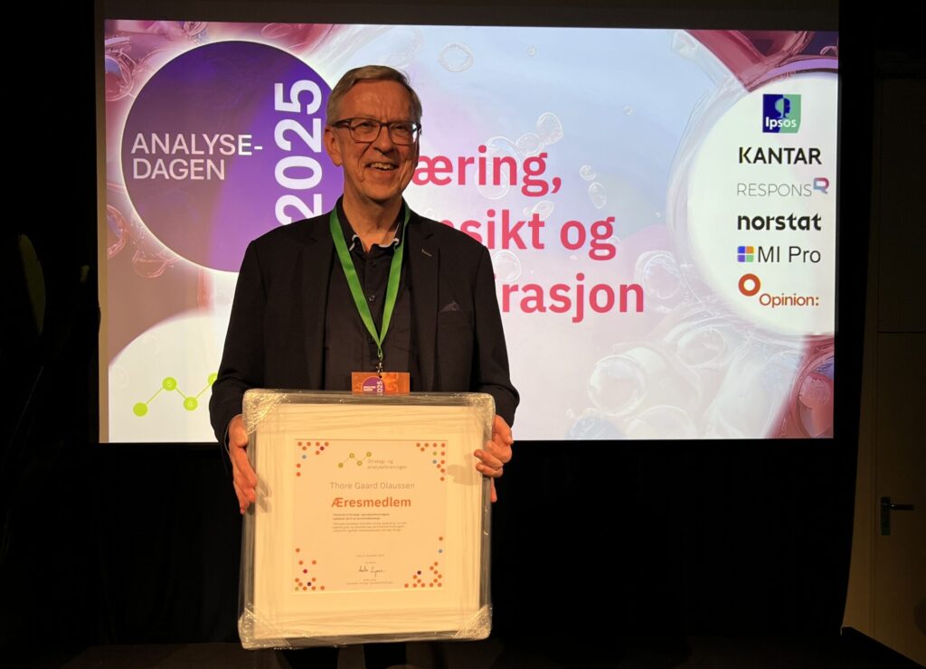 Høst 2025 ble Thore Gaard Olaussen tildelt æresmedlemskap i Strategi- og analyseforeningen, og denne utnevnelsen er svært velfortjent!